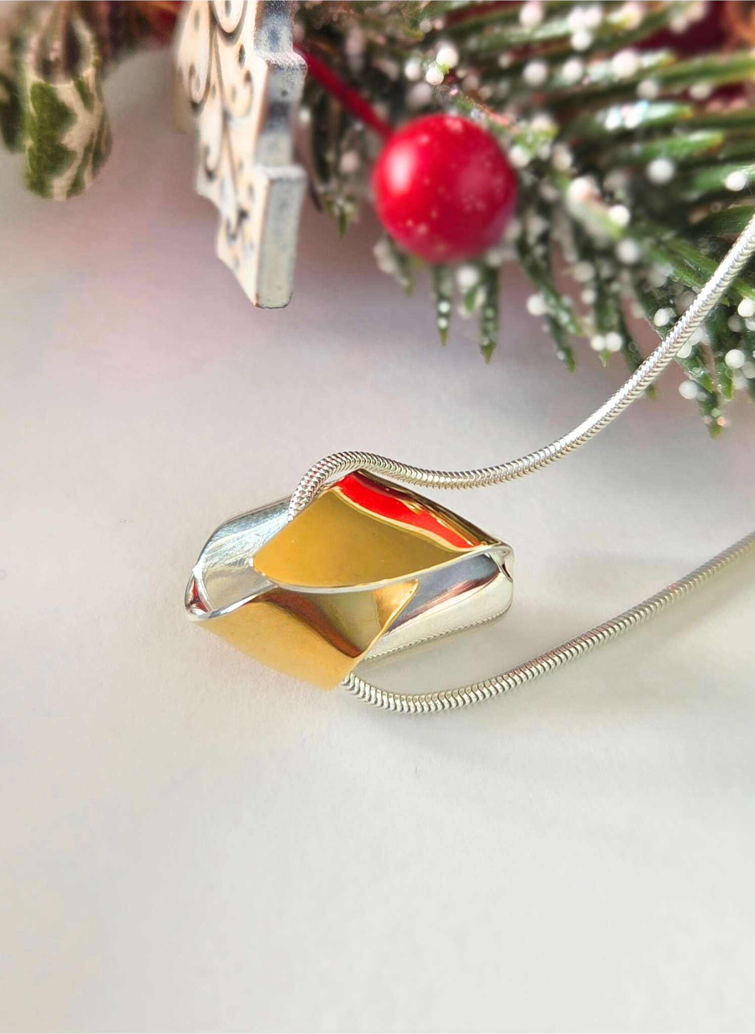 Symolising two arms embracing, this stunning pendant in 22ct yellow gold and silver is a best seller and it is clear to see why.
